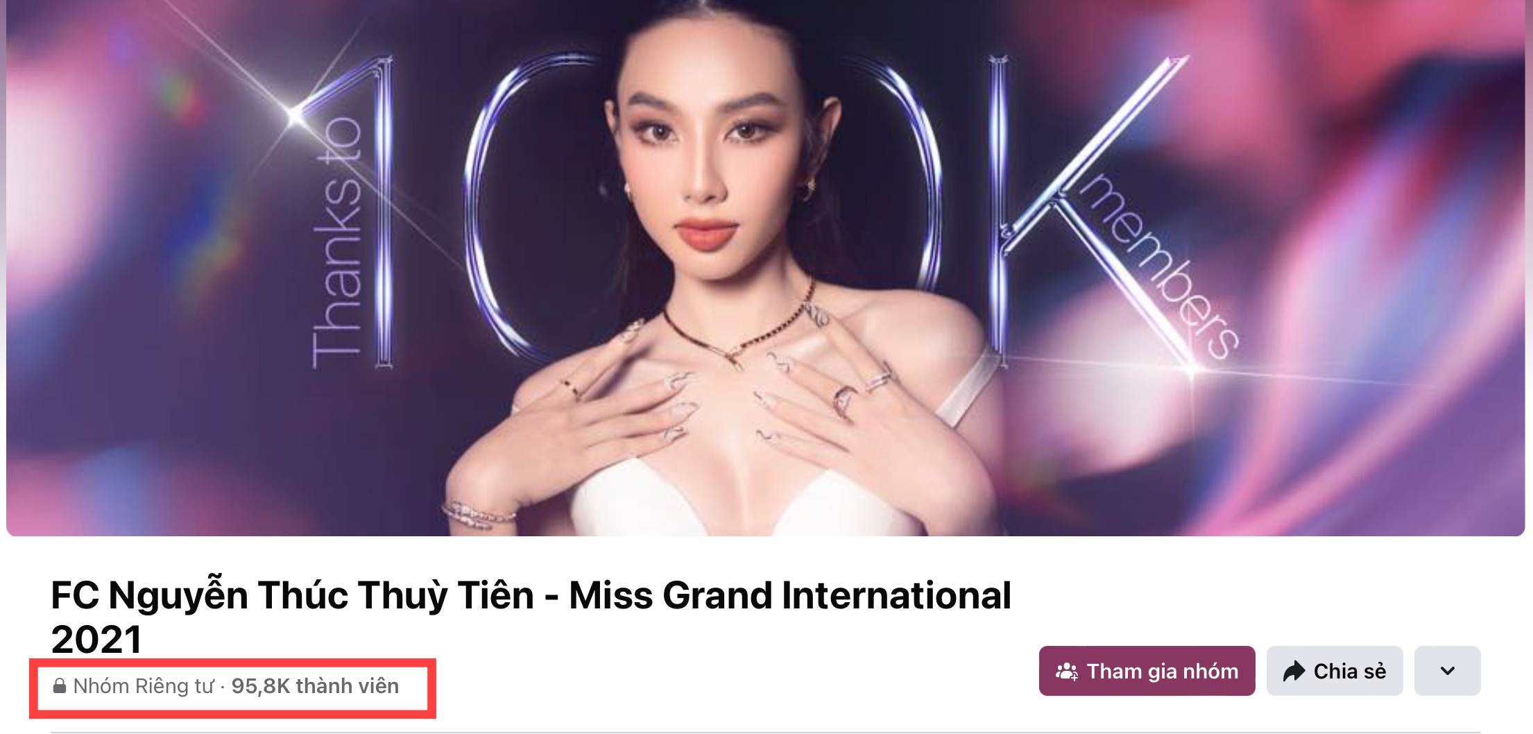 Không chỉ trang Instagram, các nền tảng mạng xã hội khác của Thuỳ Tiên dù không hoạt động nhưng cũng bị giảm người theo dõi đáng kể. Đáng nói nhất, nhóm FC của Thuỳ Tiên từng ăn mừng được 100 nghìn người hoạt động nay cũng chỉ còn tầm 95 nghìn người, con số này vẫn giảm đi mỗi ngày.